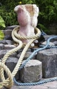 Met behulp van basaltblokken, die ik van de 'Dienst Zuiderzeewerken' kreeg, werd mijn uit travertijn gehakte tors een bolder waar schepen konden aanmeren.