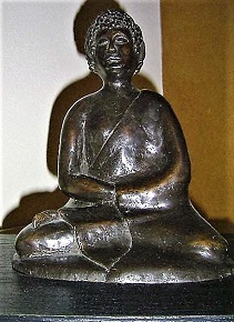 Het andere beeld is een ongecompliceerde, vrolijke Boeddha die ik eerst in was boetseerde en daarna in brons goot.
