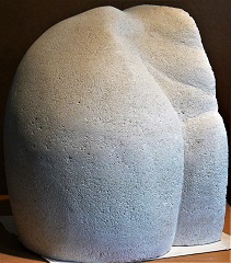 Dan is er ook nog een tussenweg. De ruwe steen, die zich meestal plotseling en onverwacht aandient, lijkt op zich vormloos en doet misschien heel in de verte aan iets tastbaars denken. Toch daagt de steen uit en krijgt voor mij langzamerhand betekenis. Tot op zekere hoogte ga ik de steen wel binnen, maar laat op door mij bepaalde plaatsen de ruwe steen zo veel mogelijk in tact. Met andere woorden, ik vervorm zo weinig mogelijk en raak, uit respect voor de steen, de oorspronkelijke essentie niet aan.