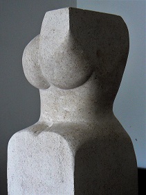 De ruwe steen trok mij al vanaf het eerste moment aan. Ik zag er een tors in, die ik bij wijze van spreken alleen maar hoefde uit te hakken. Ik liet me bij deze werkwijze (taille directe) geheel leiden door de vorm van de steen, zodat er in dit geval uiteindelijk een vrij gedrongen figuur uit te voorschijn kwam. Door het bovenste gedeelte onbewerkt te laten, kreeg het geheel toch een zekere elegantie. Omdat er geen ruimte was om de achterkant uit te hakken, liet ik die onbewerkt, zodat er van een relief sprake is.