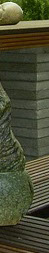 Het ene beeld is gehakt uit Belgisch hardsteen, dat ik gevonden heb in een container bij een steenhouwer. Tezamen met de dubbele sokkel, waar ik lotusbloemen en een slang in reliëf heb uitgehakt - met daarboven kommetjes voor olie en het branden van wierook - heeft dit beeld de functie van een altaar.