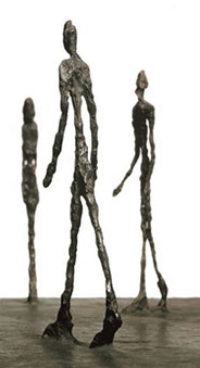 Met Giacometti zijn we definitief bij de beeldhouwkunst aangeland. Giacometti, die met zijn naalddunne bronzen figuren uiteindelijk nauwelijks meer een contour overhield. De achtergrond loopt als het ware gewoon door, niet gehinderd door het ervoor geplaatste beeld. De beelden van Giacometti nemen op het laatst bijna geen plaats meer in.