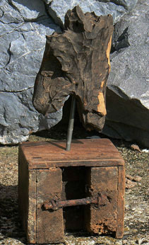 Een heel andere kant van het zoekwerk bestaat uit het vinden van hout- of steenvormen, die van zichzelf al helemaal volmaakt zijn. Er hoeft niet meer aan gesleuteld te worden. Door er een gat in te boren, er een pin in te schuiven en ze op een geschikte sokkel zetten ontstaat het perfecte kunstwerk!