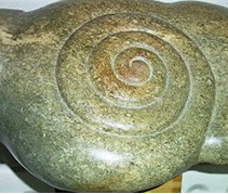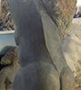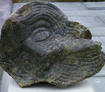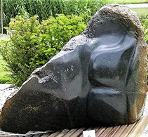 Toen wij op 12 februari 2010 op onze eerste wereldreis het eiland Maui (Hawaii) aandeden en over de verlaten stranden zwierven, troffen we een rotspartij, die van het land overliep in het water. De door het water gepolijste stenen waren schitterend van vorm. Eentje sprong eruit. Het was een liggende, diepzwarte tors - basalt? - (grootste lengte ongeveer 75 cm, waarschijnlijk enkele honderden kilo’s zwaar) van een ongelofelijke schoonheid.