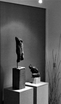 In het kader van het beleid van de Gemeente Almere om kunst meer onder de mensen te brengen werden op diverse plaatsen in de stad expositie-ruimtes ingesteld. De eerste was de KUNSTETALAGE aan het Rio de Janeiroplein in Almere-Buiten. Samen met Lucette Tros (schilderijen) exposeerde ik daar elf beelden.